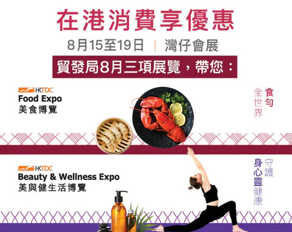 美食博覽,全名為「香港貿發局美食博覽」。是亞洲最大型飲食展覽之一。每年8月在香港會議展覽中心舉行。售賣各款特色街頭美食、海味雜貨、廚具家電等,其中包括大家最關心的$1優惠價貨品,每年都會有各款特價貨品,以及免費試食環節!